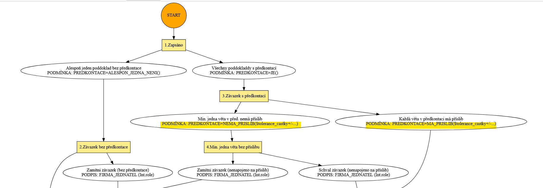 PODATELNA=BEZ_SCHV - podmínka, která se ve schvalování zaměří na doklady bez vazby na schvalovací proces.
