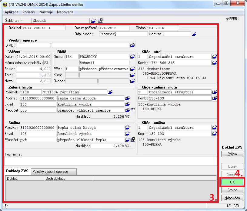 - 1. Spusťte aplikaci Vážní deník *4599.