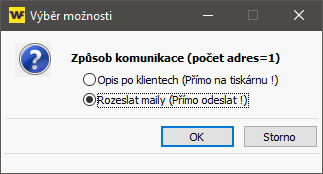 V dalším dotazu vyberte - Rozeslat e-maily