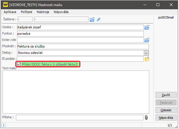 • Nezapomeňte zatrhnout "Přidat ISDOC faktury"