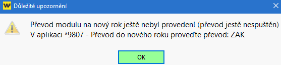 - Při práci se zakázkami ve starém roce budete upozorněni, že modul už byl převeden do nového roku.