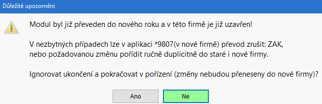 - Provedené změny ve starém roce se nemají jak přenést do nového roku, proto musíte duplicitně dopořídit změnu i do databáze nového roku.
